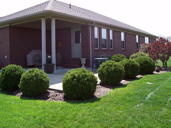 This 3 bedroom 2 full bath brick home has lots of space and a great floor plan. Large great room with cathedral ceiling, dining room with tray ceiling, kitchen with breakfast nook, custom maple cabinets, tile backsplash and large lighted pantry. Master bedroom has tray ceiling with its own bath. Bath has double vanity, jacuzzi tub and shower. Utility room with lots of storage. Recess lighting throughout home and on porches. Crown molding, beautiful hardwood, tile and carpet. Two car attached garage has pull down stairs, floored attic storage with lights and attic fan. Additional storage building 14X16 with lights, cabinets and shelving. Relaxing back porch and beautifully landscaped yard.