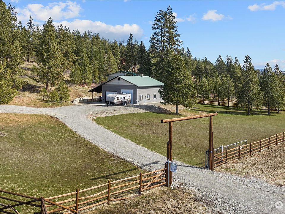 Beautiful views of the surrounding hills, mountains & scenery. Come live where the sun shines & the snow flies. Enjoy your home with 980 sq ft of living space, an additional 1,296 sq ft of fully finished shop/garage space plus extra covered parking & RV hookups! New siding, paint & more. Enjoy your entire property with THREE fully fenced & gated acres. Possibilities already in place to expand current home or build an additional home higher up to take in more views! Multiple building locations to choose from. Easy, quick access to I-90 & the town of Cle Elum. Privacy abounds here as does the local wildlife Elk, Deer, Birds & more! Bring your toys, animals & friends with plenty of room to relax.
