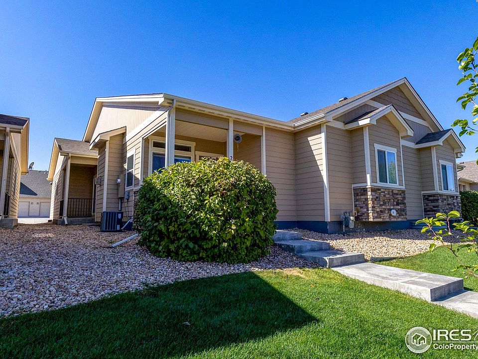 This is the perfect lock and leave home. The wide-open floorplan provides lots of useful arrangement options. Both bedrooms have their own private ensuite bathrooms with double vanities and they're each located at opposite ends of the house. You'll love the finishes. Beautiful, engineered wood flooring, an abundance of Alpine Euro soft close Shaker style alder cabinetry with crown molding, 42-inch uppers, pull-out lowers with slide out trash and recycling bins and a big corner walk-in pantry. Elegant granite countertops with radiant porcelain & ceramic tile backsplashes, stylish plumbing fixtures, stainless steel appliances including a brand new 27 cubic foot LG refrigerator plus an extra refrigerator in the garage. All new striking Bicycle Glass lighting fixtures, Kichler ceiling fans and sophisticated custom window coverings. Lots of closet spaces. Soaring, vaulted ceilings in the great room, kitchen & dining room. 9' ceilings in the bedrooms and bathrooms. The powder bath is located in the center of the house next to the nice big laundry room and utility closet. The front porch includes a retractable shading system for sunny mornings. Downstairs you'll find 9 ft ceilings, a passive radon mitigation system, sump pit, 96% efficiency 2-stage Goodman direct vent furnace with a fresh air ventilating system & 13 SEER air conditioner, an on-demand direct vent tankless Navien water heater and a new Express Water 3 zone (Sediment, G.A.C. & Carbon) water filtration system. The engineered silent floor trusses and insulated basement walls collaborate to keep quality top-of-mind. The HOA covers landscaping, water for landscaping, snow removal, management, exterior maintenance, and exterior hazard insurance. Oversized insulated, painted garage with an 8' overhead door. A new class 4 hail resistant roof is scheduled for installation and paid for by Sellers. Check out our 3D Virtual Tour and schedule a showing today!