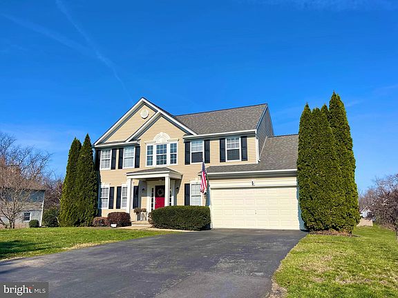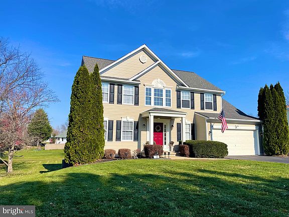 Beautiful home ideally located on a quiet dead-end street with mountain and pasture views and is ready for you to call home! Features include a newer roof and siding that were both replaced in 2018, stainless steel kitchen appliances purchased in 2021, all carpet and luxury vinyl plank flooring were replaced in 2021 and New Heat Pump installed in 2022. Spacious eat-in kitchen with island opens to the large family room with wood-burning fireplace. Tons of amenities with this from the vaulted primary bedroom ceiling, corner soaking tub in primary bathroom, crown molding, formal living and dining rooms, rear deck that was refinished in 2021, and full unfinished, walk-out basement with bath rough-in for future bath. Don't miss the opportunity to see this home!