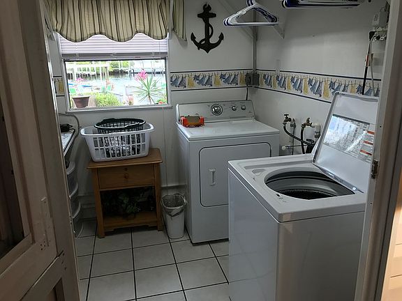 201 Denmark Partially Furnished Unbelievable!! This fully updated home on the Manatee River features its own boat dock and lift, deck on the water and beautifully landscaped patio area. This home is set on the lot in reverse; meaning your water view is from the living room and front of the home and the bedrooms are on the street side. This home is being offered unfurnished so you can make it your own. The dream kitchen and dining area have been expanded to provide an open concept living, dining, kitchen area with a bar/island separating the kitchen and living spaces. The kitchen features all new light brown cabinets with roll out shelves, soft-close drawers, roll-out pantry shelving on each side of the refrigerator and stainless steel appliances. The kitchen has vinyl flooring, with dark brown laminate throughout the rest of the house and has a plywood subfloor. The guest bath has a shower and toilet with an adjoining door to the master bath vanity. The guest bedroom can accommodate a queen bed or be used as den/office and features a murphy bed on the wall for guests. The master bedroom accommodates a king bed with 2 night stands with on-suite and large closet space. The 12’x20’ screened lanai along with the back patio allows for entertaining large groups of guests. Off the lanai is a laundry room adjoined by a utility room with workbench and room for an additional refrigerator or freezer.