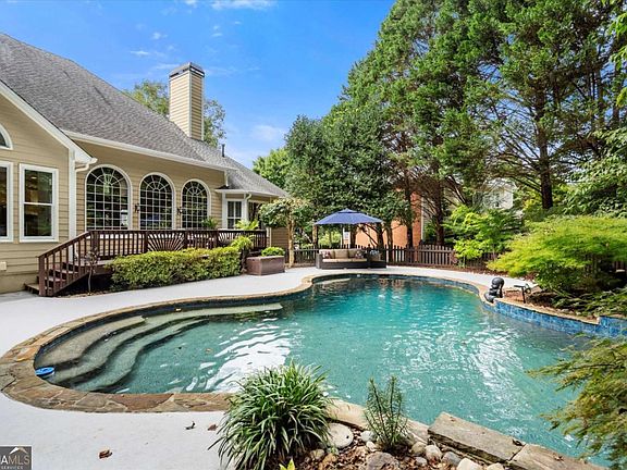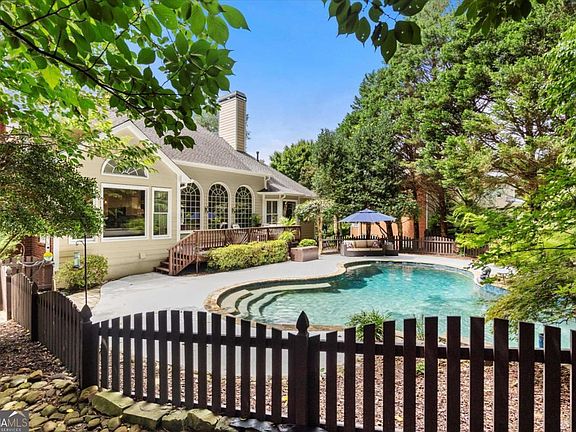 Fall is in the air, and this home frames the season beautifully-amazing fall foliage pours in through a stunning wall of windows in the family room and kitchen, creating the perfect backdrop for cozy days and crisp evenings. Hard to find, "walk out from your main level" to your backyard oasis. Experience resort-style living on a private 1/2+ acre corner lot, offering beautiful poolside views from every angle. The main-level primary suite is a true private sanctuary, complete with a sitting area overlooking pool and tranquil waterfall. Enjoy a spa-inspired bath featuring a whirlpool tub, walk-in tiled shower, dual vanities, and his-and-her closets. A gracious foyer welcomes you, flanked by a stylish dining room and a versatile home office. The expansive fireside family room, with its dramatic wall of windows, frames your backyard oasis with picture-perfect views. The light-filled kitchen offers a keeping room, center island, breakfast nook, new appliances, and designer lighting-ideal for everyday living and effortless entertaining. Upstairs, you'll find three spacious bedrooms-one with a private sitting area, one Jack-and-Jill suite, and a third ensuite for maximum comfort. The terrace level adds even more versatility with three finished spaces including a bedroom, half bath, and media room. Expand further, design an entertainment haven, or enjoy abundant storage-the possibilities are endless. Step outside to a little fireside retreat and savor cool fall evenings under the stars by the firepit. The expansive main-level outdoor living opens to a large deck perfect for grilling, gathering, and enjoying lush landscaping surrounding the beautifully designed pool with waterfall. This property is more than a home-it's a complete lifestyle, offering total privacy, elegant design, and the unmatched amenities of Woodmont Golf & Country Club.