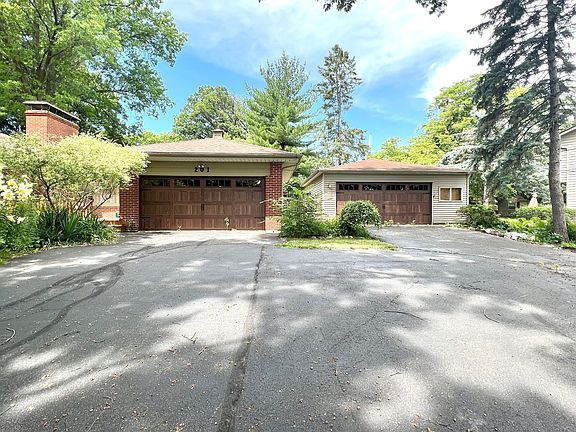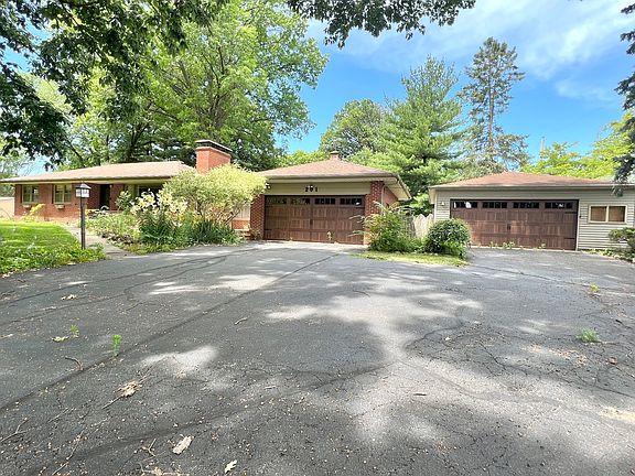 Welcome to your new home! This beautifully crafted all-brick ranch home sits on a desirable corner lot. Key Features: Attached two-car heated garage plus a two-car detached heated garage for additional storage or hobbies, a fenced-in back yard, garden shed and a large deck off the back of the home. Interior Highlights: Spacious living room with stunning floors and a cozy wood fireplace, three bedrooms on the main level plus a den in the basement (no Egress window). Most of the windows have beautiful stained glass making the home unique. Basement Amenities: Large family room- perfect spot for a movie room, playroom or gym. Another full bathroom, laundry space, storage space and a kitchenette featuring a sink, refrigerator, oven/stove and an island. With some landscaping clean-up, this home is move-in ready! Home is being sold in "AS-IS" condition