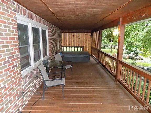 All brick beauty on over half an acre on dead end street with mature trees. Sit on front porch and enjoy landscaped yard blocked by street. Kitchen and bath remodeled prior 2 years. All appliances less than 2 years old stay.Enjoy built in hot tub on covered porch. New fish pond on rear patio. Electrical done in 2015. Roof in 2011. 220 heat and cooling for garage prior 12 months with loft in garage for extra storage. Walk up attic that offers ton of storage along with garage attic. Three lots in town with country wildlife. This house is turnkey ready! Motivated seller.