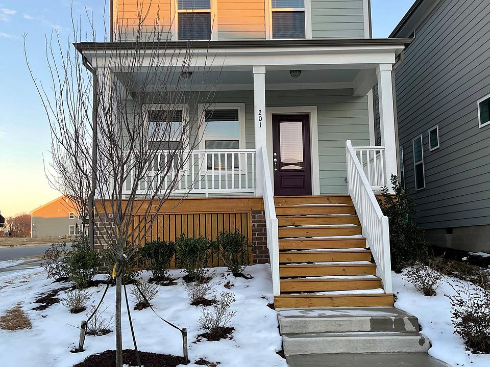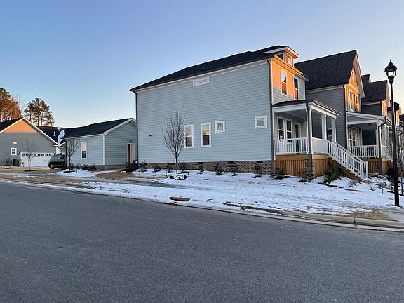 Beautiful new construction in Wendell Falls built in 2021! Corner lot features open floor plan with accent walls, stainless steel appliances, granite kitchen countertops, upgraded gas range, office nook, mud room, and included refrigerator/ washer/dryer. Master bedroom has two large closets and double vanity, and second bedroom includes a private full bathroom. Exterior features a spacious front porch, backyard, and a detached two car garage that also includes two exterior parking spaces. Enjoy all that Wendell Falls has to offer including a community saltwater pool, fitness center, walking trails, playgrounds, and the local favorite - Farmhouse Cafe! Walking distance to Treelight Square, multiple schools, and less than 10 minutes from charming downtown Wendell, or only 15 miles from downtown Raleigh. No pets, no smoking. Tenant responsible for landscaping and utilities. Monthly HOA fee and pest control included. Minimum 12 month lease.