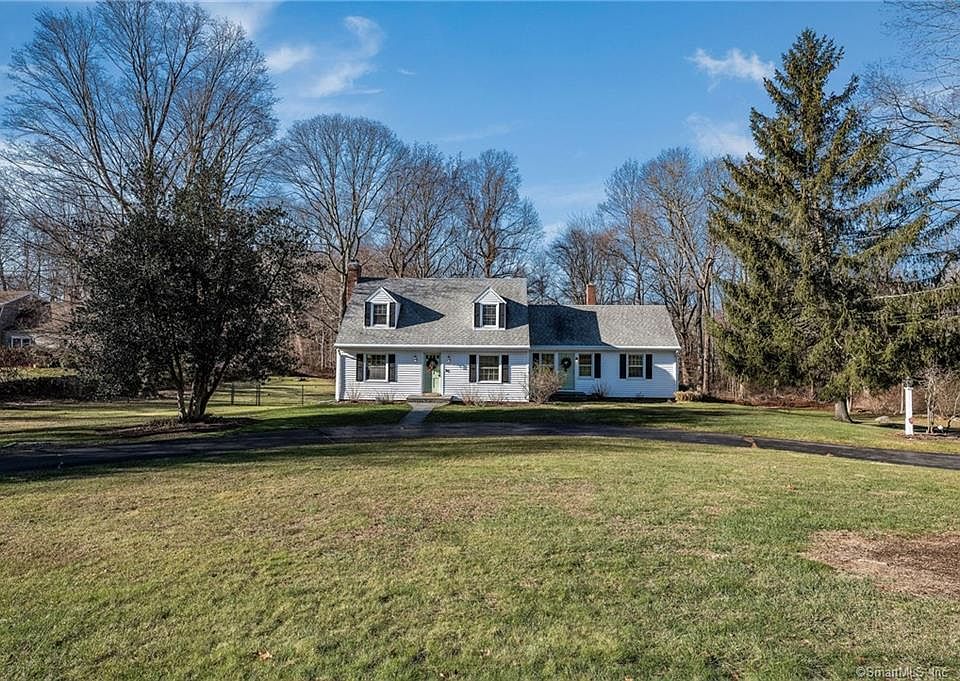 Storybook Cape! Set back from the road on 1.74 acres sits beautifully on the property offering privacy, large circular driveway and fully fenced back yard. Bright and airy, beautifully maintained, hardwood floors throughout, the roomy kitchen with stainless appliances opens to family room and access to the deck and backyard. Lovely spacious Livingroom with cozy fireplace. A first-floor bedroom can also be used for an office space. 2 additional large bedrooms on the upper level share a full bath. The barn space is huge whether you need space for cars, workshops, studios, storage... it's all here. Great house and located just minutes from I-95, Madison's charming town center and gorgeous beaches! Nice large rear yard to enjoy all year round, it is currently completely fenced in! Don't miss this gem!