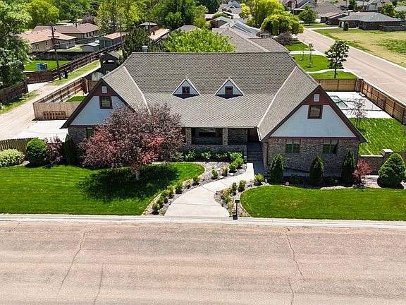 Welcome to this stunning 1.5-story brick home, perfectly situated on a corner lot across from a park. With over 5,500 square feet of living space, this residence features six spacious bedrooms, four baths, two living areas, a huge bonus room, and much more. The backyard oasis includes a beautiful in-ground pool and a covered patio, all enclosed for privacy. Inside, you'll find breathtaking vaulted ceilings, an elegant wrought iron spiral staircase, and an abundance of natural light throughout. Additional highlights include an attached two-car garage and ample storage space, making this home as practical as it is beautiful. This home is a must see!Please Call or Text Dana Trahern at NextHome to set up your showing today-620.353.9537