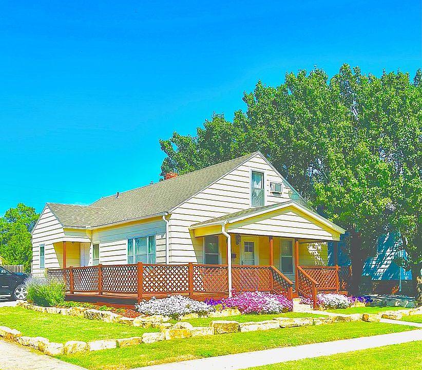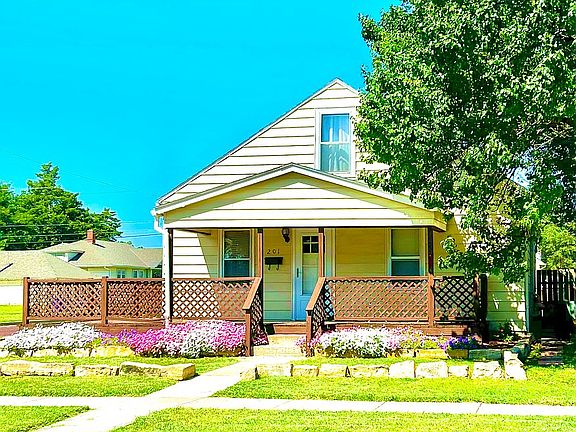 Comfortable home with ample living spaces and storage. Hardwood floors restored. Large fenced backyard with garden boxes, fruit trees, patio, and concrete pad and wide-open gate for extra parking or shed installation. Wrap-around deck and charming limestone flower/garden beds. New energy-efficient water heater. Home well insulated under HowSmart program ($26/month on Midwest bill).