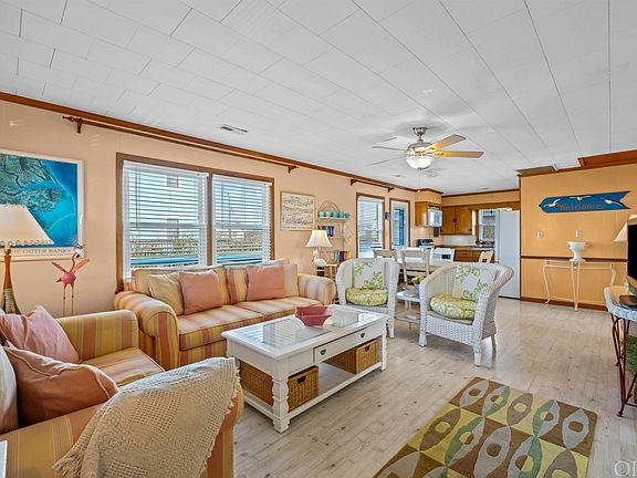 When the perfect beach location meets the cutest cottage, what do you get? Your own private paradise! This classic Outer Banks beach box has been lovingly maintained and features coastal colors and cool island vibes. 3 bedrooms and 1 ½ baths make it the ideal combination of space and manageability. The bright, open concept living/dining/kitchen area features updated flooring and is the perfect gathering spot. Overflowing with outdoor living options there is an abundance of open and covered spaces. Head to your upstairs deck for some time in the sun or relax on the screened porch, watching beach lovers heading to and from the sand. Downstairs, enjoy the privacy and shade of your huge outdoor living area featuring an open dining space, screened patio and gated driveway – perfect for pets and kids to play safely. An oversized outdoor shower with sink is the best way to end a day at the beach. Not only are you situated on a corner lot and just steps from the First St beach access, with a lifeguard stand, you are centrally located close to shopping, dining and attractions. Paradise found!