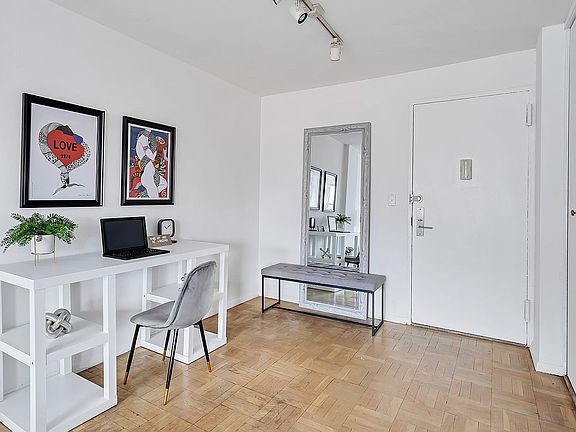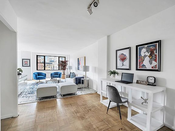 Featuring one of the best and biggest one-bedroom layouts at coveted Quaker Ridge, this home offers stunning high-floor views and a fantastic flexible layout with great storage. Bring your imagination and transform this original-condition Junior 4 to meet your exact needs. Currently configured with an expansive living room leading to a corner dining area and galley kitchen, there are myriad options for transforming this highly adaptable B-line home. Add a second bedroom or home office by closing off the alcove, and you'll still have a generous footprint for seating and dining. Open up the kitchen to add an island and breakfast bar. The king-size bedroom provides plenty of room for additional furniture, and three large closets ensure storage will never be a concern. Throughout the spacious and sunny home, oversized windows capture stunning natural light and skyline views to the south and west. Quaker Ridge is a classic white brick postwar co-op known for its excellent financials, low monthly maintenance and a prime location just steps from Gramercy Park. Residents of the pet-friendly building enjoy full-time doorman service, a live-in superintendent, laundry, bike storage and a residents-only parking garage with direct access to the building. Quaker Ridge allows co-purchasing and gifting but does not permit guarantors or pieds-à-terres. Please note, there is a monthly energy charge of $137.56 which adjusts quarterly. There is currently a monthly assessment of $63.68 through the end of 2022 and an additional special assessment of $306.59 per month beginning in June 2022 through the end of 2022. Located just minutes from Union Square, the Flatiron District and NoMad, this home is at the heart of exciting Manhattan living with abundant shops, restaurants, services and outdoor space at every turn. Union Square and Madison Square Park put a dog park, greenmarkets and year-round events mere blocks away, and foodies will love the proximity to Whole Foods, Trader Joe's, Eataly and numerous Michelin-starred restaurants. Access to transportation is fantastic with 4/5/6, N/Q/R/W and L trains, excellent bus service and CitiBikes nearby.