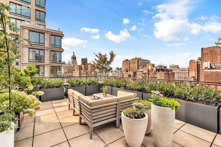 Staying in is the new going out and you can have the best of indoor/outdoor living in this one-of-a-kind PERFECT ONE in Gramercy. Be surrounded by captivating iconic downtown views from the World Trade Tower to the Chrysler Building to the Met Life Building. North, South, East and West bathe yourself in radiant light on two heavenly landscaped terraces. Stay at home and enjoy the twinkling skyline of old New York by simply opening your door. Tranquility begins in foyer and opens into the expansive living space. The dining area features open display shelves. Renovated to perfection, the spacious galley kitchen boasts custom cabinetry and top-of-the-line appliances. Open the kitchen window to a window box of fresh herbs! The gracious living room opens onto the palatial West terrace. The tulip bulbs in the spring, the hydrangeas in the summer, the sedum in the fall and the evergreens in the winter; the pleasure of gardening awaits. Fully equipped with irrigation, there is so much to love. A note from the sellers to the new owner: "The terrace has been a labor of love. We spent years perfecting it; including its custom made climbing rose arbor. We grew several vegetables on the bedroom terrace and used the large terrace for moonlit dinners and entertaining. Full sun ensures that the garden grows well year after year." The primary bedroom with its large fashionista closet and large south-facing lounging terrace is simply divine. The windowed renovated marble bath includes a bidet. Whatever season, whatever time of day, delight in the morning sun, a garden paradise, a spectacular sunset or the Manhattan night sky. Quaker Ridge is a premier postwar full service well-managed cooperative. Concierge, doorman, live-in super, central air, elegantly renovated hallways, renovated, laundry room, storage, bike storage, and on-site parking garage available to Quaker Ridge residents alone are what make living in the Quaker Ridge special. Monthly energy charge of $133.32.