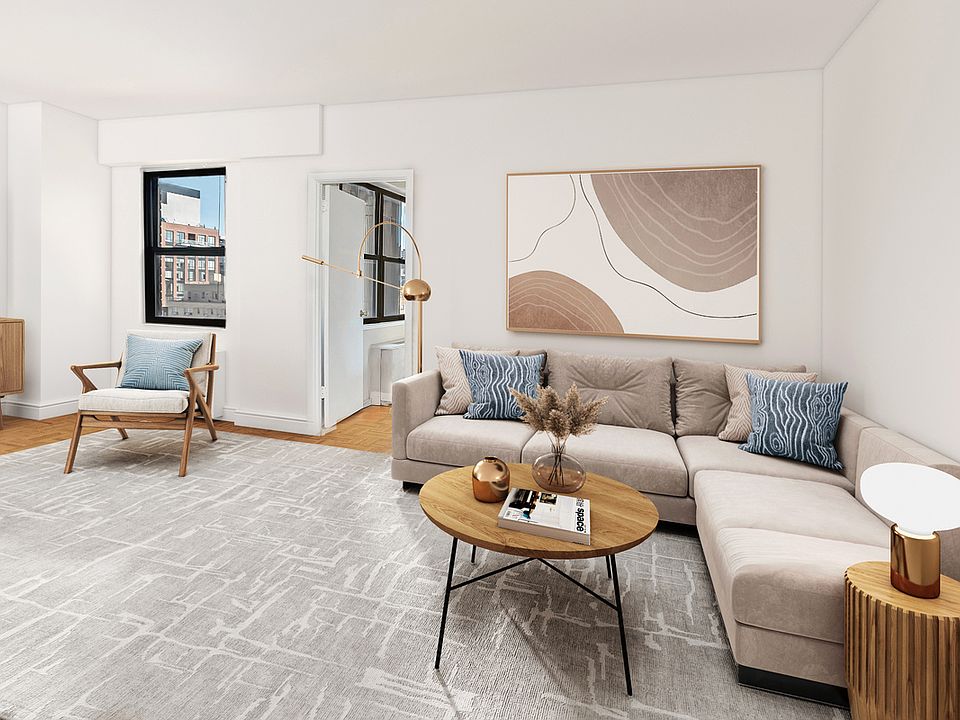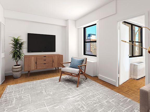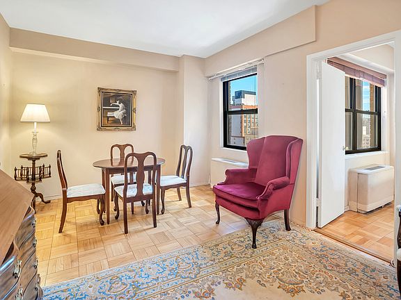 Enjoy top-floor sunlight and gorgeous open-sky views in this converted junior one-bedroom home in Gramercy Park's revered Quaker Ridge cooperative. Large east and north facing windows invite you inside this spacious home to find a generous footprint for living, dining and home office areas. Hardwood floors run throughout, and three oversized closets mean storage will never be a concern. The roomy kitchen can be opened up to add a breakfast counter alongside its abundant cabinet space and full-size appliances. The full bathroom features nice tile and a large tub/shower. Originally an alcove studio, the current converted layout could easily be reworked to create an en suite bedroom arrangement. Quaker Ridge is a classic white brick postwar co-op known for its excellent financials, low monthly maintenance and a prime location just steps from Gramercy Park. Residents enjoy full-time doorman service, live-in superintendent, laundry, bike storage and a residents-only parking garage with direct access to the building. Quaker Ridge allows co-purchasing and pets but does not permit guarantors or pieds-à-terre. Located just minutes from Union Square, the Flatiron District and NoMad, this home is at the heart of exciting Manhattan living with abundant shops, restaurants, services and outdoor space at every turn. Access to transportation is fantastic with 4/5/6, N/Q/R/W and L trains, excellent bus service and CitiBikes nearby.