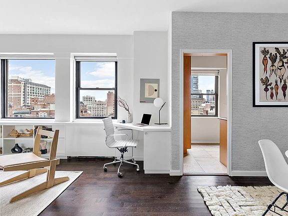 Perched on the top floor, this oversized one bedroom has the VIEWS you've been searching for. Located in the highly desirable Quaker Ridge co-op, residents enjoy the benefits of low maintenance and wonderful service-oriented staff. Take in the Western views of Gramercy Park from your spacious living room, and Southern views from the king-sized bedroom. With a total of seven windows, including a windowed bathroom and kitchen, this home gets beautiful light in every room. The living room is framed with a tray ceiling and recessed lighting to create a perfect gallery wall. A home office is smartly integrated into a wall of window-framing built-ins. Keep your work out of sight when you're done for the day with cabinets that can easily fit a printer and a laptop. Enjoy a cozy meal or host a dinner party in the perfectly located dining room, right off the kitchen and open to the living area. And who doesn't love a kitchen with a view? Keep your kitchen items organized with plenty of cabinet space and a separate pantry closet. Down the hall, a beautiful marble bathroom features shelving and a bench seat that feels truly custom. Rounding out the custom features is a dreamy walk-in closet in the bedroom. Quaker Ridge residents enjoy full-time doorman service, a live-in superintendent. modern laundry facilities, bike storage and a residents-only parking garage with direct access to the building. Located in the heart of Gramercy with excellent dining, shopping and transportation options Enjoy a stroll through Union Square or Madison Square Park, chef-favorite greenmarkets and year-round events. Co-purchasing and gifting are allowed. Sorry, no pied-a-terres or Guarantors permitted. There is currently a monthly assessment of $64.24 through the end of 2022. Pets are welcome!