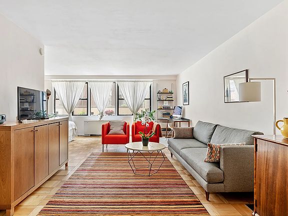 Welcome to your alcove studio apartment located in a full-service doorman building in the vibrant neighborhood of Gramercy Park. This cozy yet stylish residence offers southeast-facing views allowing you to enjoy an abundance of natural light throughout the day. As you enter the apartment, you are greeted by a well-designed and functional layout that maximizes the available space. The living and dining area is nearly 28' long allowing you to create a welcoming and inviting atmosphere for both relaxation and entertaining. There's also plenty of space for a home office. The alcove area provides a designated space for a comfortable queen-size bed and more. You can easily convert this area into your separate bedroom. The apartment has 3 generous sized closets. The kitchen is very functional and has full size appliances including a new Frigidaire refrigerator. Quaker Ridge is known for its prime location just 2 blocks from Gramercy Park. Residents enjoy full-time doorman service, live-in superintendent, laundry facilities, bike storage and a residents-only parking garage. Quaker Ridge allows co-purchasing and pets, but does not permit guarantors or pieds-à-terre. Located just minutes from Union Square, the Flatiron District and NoMad, this home is at the heart of exciting Manhattan living with abundant shops, restaurants, services and outdoor space at every turn. Access to transportation is fantastic with 4/5/6, N/Q/R/W and L trains all nearby. NOTE: There is an energy charge of $74.62 and a current assessment of $243/month that is included in your monthly maintenance of $1219.