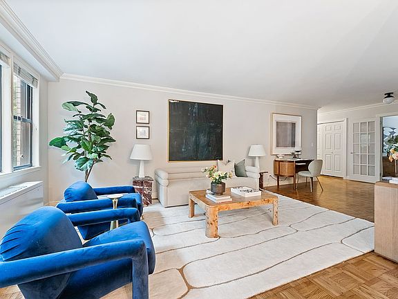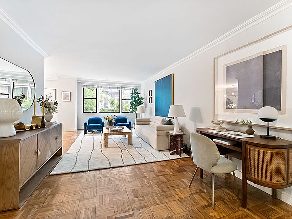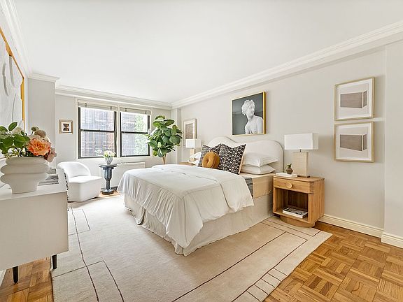 Nestled in the sought-after Gramercy Park neighborhood, this stunning corner residence bathes in abundant natural light and offers three exposures, presenting a tranquil haven at the heart of a tree-lined street. Step inside the expansive living area, illuminated by southern exposure, providing an ideal setting for both entertaining and relaxation. Recently renovated, the kitchen boasts stainless steel appliances, marble counter tops, ample storage within white cabinetry, including a generous pantry. The spacious primary bedroom exudes comfort with its northern-facing windows, walk-in closet, and en suite bath, while the second bedroom enjoys northern exposures and plentiful closet space, providing versatility and allure. Additional features include a spacious linen closet, custom shades in both bedrooms, a welcoming foyer with an oversized coat closet, and hardwood flooring throughout. Quaker Ridge embodies classic post-war elegance, offering a comprehensive suite of amenities including a dedicated doorman, attentive staff, live-in superintendent, updated lobby and hallways, laundry facilities, bike storage, private storage, and exclusive access to a residents-only parking garage directly connected to the building. Monthly energy surcharges fluctuate quarterly based on actual energy costs (ranging between $133 and $211/month over the last year), while reduced electric and gas charges (ranging between $27 and $71/month over the last 12 months) are billed through the building. Pets are warmly welcomed, and co-purchasing and gifting are permitted subject to board approval, while guarantors and pied-a-terres are not permitted.