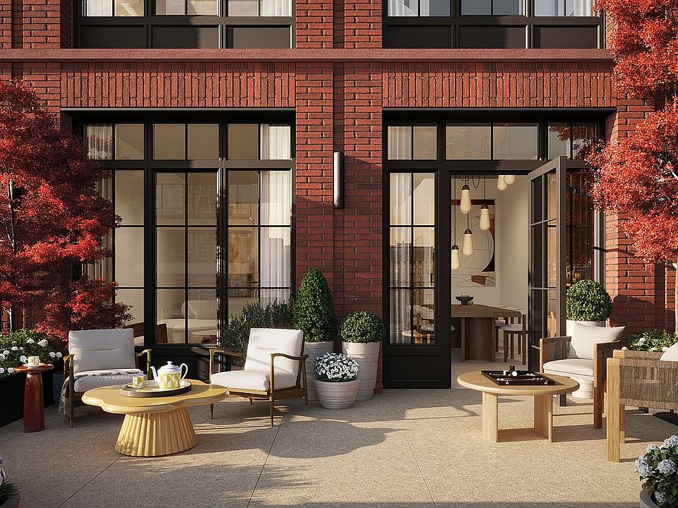 The building’s striking hand-laid red brick façade, designed by COOKFOX Architects, pays homage to the architectural fabric of the historic Gramercy neighborhood, with elegant arched bays and oversized windows that create a seamless blend of warmth and modern sophistication.