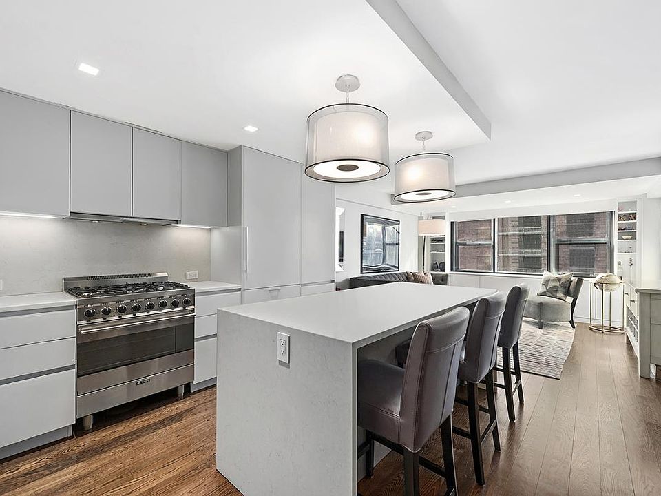 Perfectly located at the nexus between Gramercy Park, NoMad, and Kips Bay, you will find this beautifully renovated home with great light, views, and a chic contemporary design. lt;brgt;lt;brgt;This perfectly proportioned home offers everything you could want in NYC living. Custom designed by Cesar Kitchen, the open Chef's Kitchen is fully equipped with high end appliances such as a Smeg 5-burner range, Sub Zero refrigerator with a double pull-out freezer, Bosch dishwasher, and a stunning Caesarstone waterfall breakfast bar that provides ample seating. Each and every cabinet is thoughtfully designed with the modern chef in mind. lt;brgt;lt;brgt;Off the kitchen, the spacious living room offers amazing views of the Empire State Building and beautiful Western light that sparkles at sunset. lt;brgt;lt;brgt;The extra-large bedroom easily fits a king size bed and even a Peloton! Custom shades, and a full wall of custom closets round out this comfortable bedroom. The bathroom was expanded to create a generous walk in shower and plenty of room to get ready. lt;brgt;lt;brgt;There are beautiful oak floors throughout along with recessed lighting, custom cabinetry, and central AC/heat.lt;brgt;lt;brgt;The Peter James is a lovely mid-century building which offers a full-time doorman, laundry room, and a spectacular landscaped roof deck with 360-degree city views-perfect for watching the Fourth of July fireworks! The building allows pets, co-purchasing, guarantors, pied-a-terre, and subletting. lt;brgt;lt;brgt;Please note, the building is undergoing Local Law 11 work which will finish in May/June of this year.