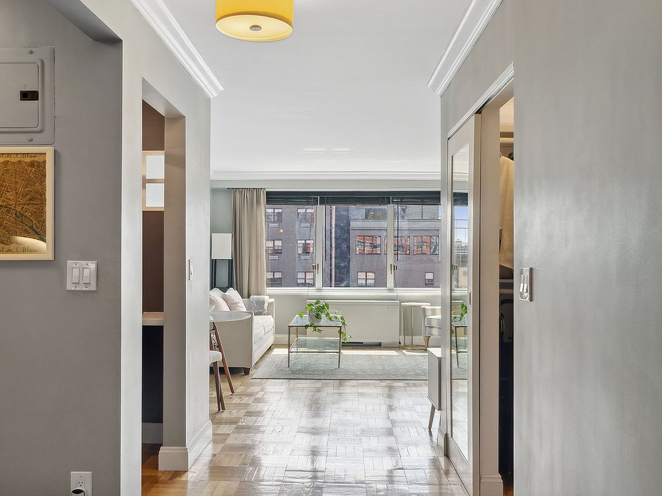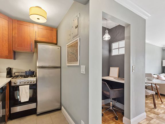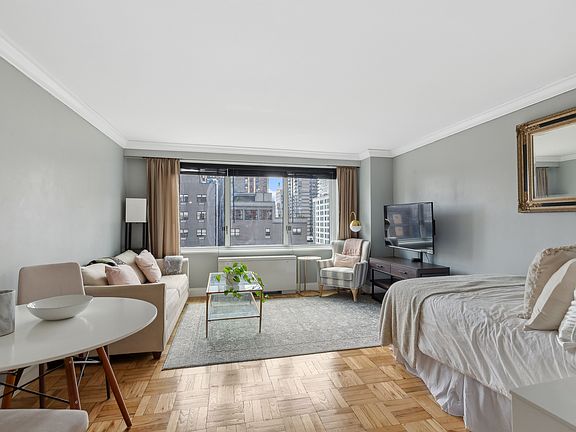 Available October 1. Renting this exceptional, mint condition south facing studio with alcove sleeping area which is waiting for you! The unit has a spacious kitchen, custom cabinetry and countertops, Avanti appliances, refinished floor and modern bathroom which is accessed through the private dressing room/ walk in closet. The bonus room can be either used as an office or converted into an additional closet. The unit is bright, open and has a new HVAC unit. With wonderful new windows, freshly painted and low monthlies, nothing to do but move it and enjoy it! The building is meticulously maintained with updated lobby and attended by 24-hour door service. Amenities include a laundry room on every other floor, bike room, parking (wait list) and a unique roof deck with unobstructed city views. Located by all transportation (6, N & R trains), shopping and great restaurants. NOTE: this is a COOP building