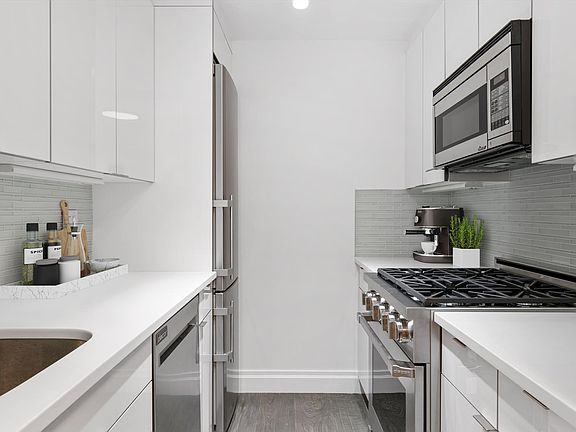 Your dream opportunity is here, to live in an impeccably renovated Sponsor owned 2 bedroom 1 bathroom home. South facing windows invite generous light into this beautiful apartment, with gorgeous solid oak floors adding warmth and elegance. The thoughtful layout features an expansive living / dining room which lends itself perfectly for entertaining. The kitchen is tailored to the chef with stainless steel appliances including a Lebherr refrigerator, and Caesar stone counter tops. The tastefully done bathroom has radiant heat flooring for those cold nights. Unwind in your spacious master bedroom, offering a large closet and city views. The Peter James is a full service cooperative with a stunning roof deck, newly renovated hallways, resident super, laundry on every other floor, garage and bike storage. Pets allowed.