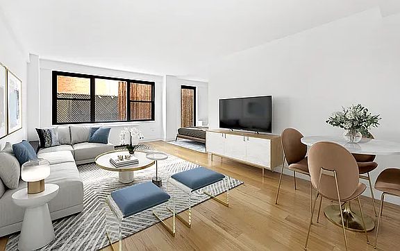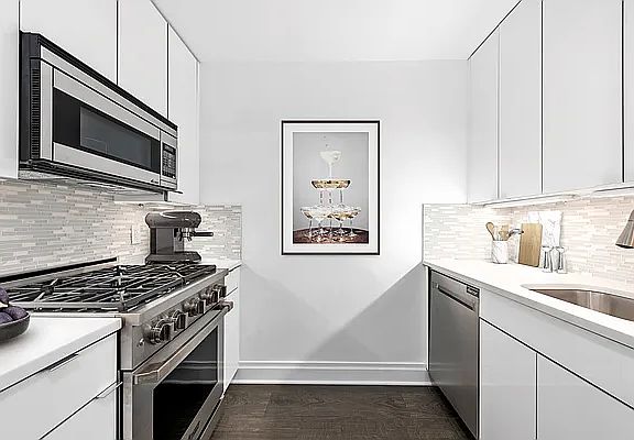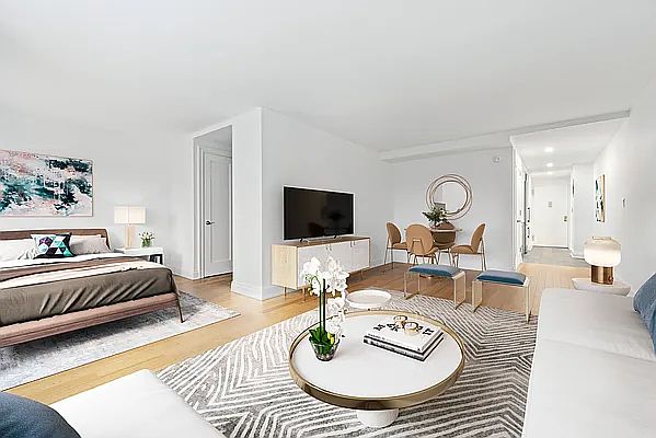 BEAUTIFULLY RENOVATED Studio/Junior 1 with sleeping ALCOVE! Move right into this modern pin-drop quiet space that has just undergone a meticulous renovation. Perfect layout offers a comfortable seating area, a restful sleeping area and gleaming new floors with a beautiful outdoor space! A mint kitchen with stainless steel appliances is the perfect place to bring out your inner chef! A modern bathroom too. The tranquil sleeping area accommodates a Queen sized bed. This beautiful space has excellent closets too! The Peter James is a full service coop with 24 hour doorman, supremely attentive live in super and convenient to all shopping and transportation. There are laundry rooms on alternating floors, and a glorious planted roof deck.