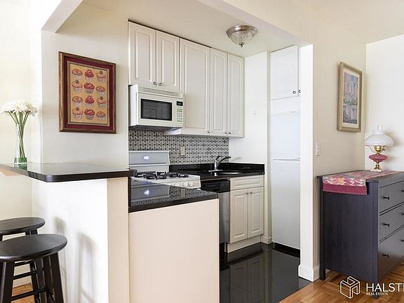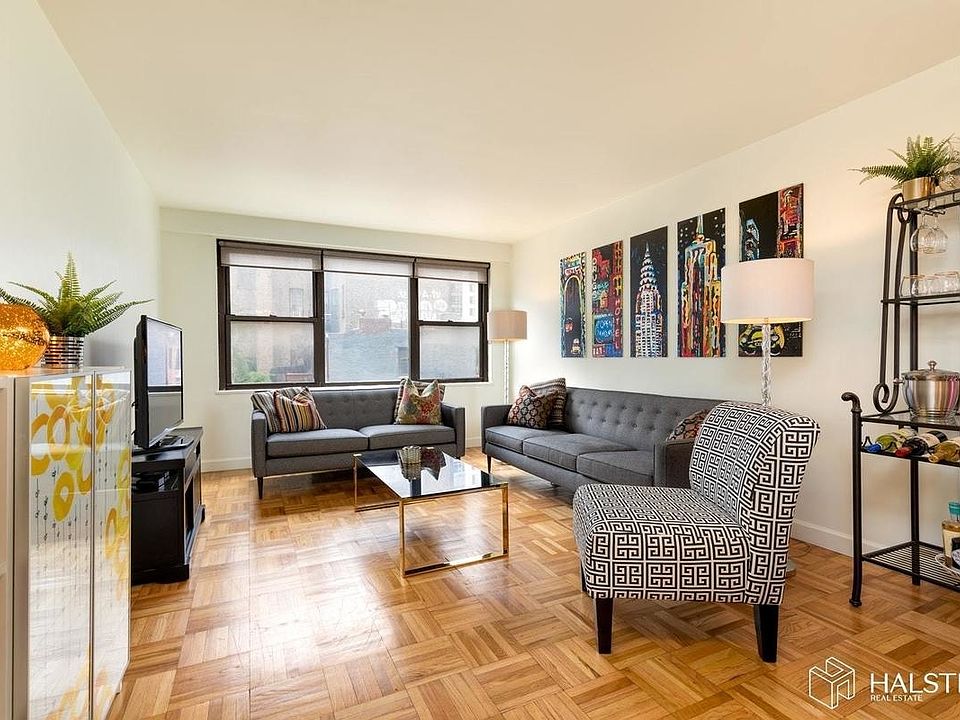 This south facing sunny apartment looks over the treetops of 25th street and is so close to everything. Walk into this space and you are immediately impacted by the openness & well-appointed quality of the apartment. The open kitchen looks over the large living space for ease of entertaining and the large foyer is punctuated by a large organized closet. Before entering the bedroom, you have another large walk in closet that is also organized with Elfa systems, and a beautifully renovated bathroom. The jumbo size bedroom easily accommodates a king size bed, and in the corner next to the sunny window is a built-in desk with plenty of space for working from home. The windows in the bedroom are also custom fitted with city quiet windows to ensure a restful sleep while living in the middle of Manhattan. The bedroom boast 2 Elfa designed closets which easily meet all of your storage needs. The trough wall AC units in the living room and bedroom were replaced 1 year ago and are working quietly and smoothly meeting all modern energy efficiency guidelines.