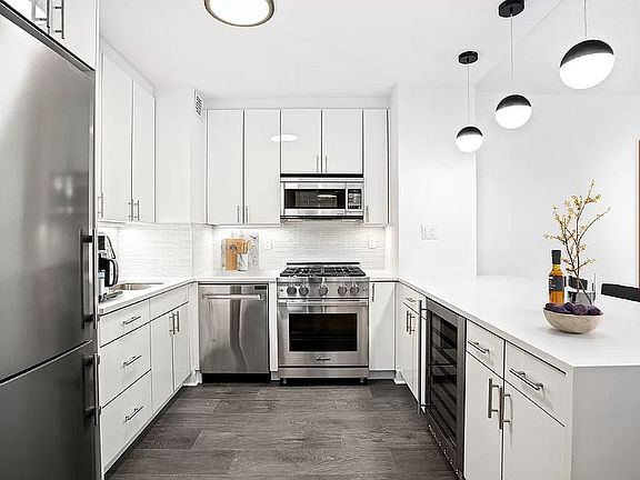 Your dream opportunity is here, to live in an impeccably renovated Sponsor owned 1 bedroom 1 bathroom home. West facing windows invite generous light into this beautiful apartment, with gorgeous solid oak floors adding warmth and elegance. The thoughtful layout features an expansive living / dining room with an open chefs kitchen complete with a wine fridge. The kitchen is tailored to the chef with stainless steel appliances including a Bosch refrigerator, and Caesar stone counter tops. The tastefully done bathroom has radiant heat flooring for those cold nights. Unwind in your spacious master bedroom, offering a large closet and city views.The Peter James is a full service cooperative with a stunning roof deck, resident super, laundry on every other floor, garage and bike storage. Pets allowed. No Board Approval
