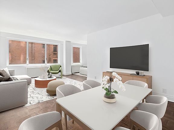Your dream opportunity is here – to call home an impeccably renovated, Sponsor-owned Alcove Studio / Jr 1 bathroom apartment – with no board approval necessary. Feast your eyes on this completely gut renovated home at the Peter James Building and you’ll definitely want to make it your own. The thoughtful layout features an over sized living/dining area with the perfect sized adjacent sleeping alcove. The kitchen is tailored to the chef with a suite of high end appliances, radiant heat floors, modern white cabinetry, & caesar stone counter tops. The tastefully renovated bathroom also features radiant floor heating, providing warmth on chilly nights. Brand new windows invite generous light into this beautiful home , while redone floors and ample closets add warmth and elegance. Take advantage of all that the city has to offer with this prime location – from dining and nightlife to Madison Square Park and convenient transportation options. The Peter James is a full service cooperative with a stunning roof deck, resident manager, laundry on every other floor, garage and bike storage. Co-Purchasing, Guarantors, Pied-A-Terre’s, and Pets are allowed. There is currently an assessment of $247.11. (Photo’s are virtually staged)