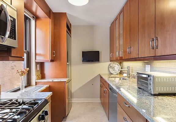 Upon entering this wonderfully renovated triple exposure, oversized one bedroom with great layout, all-day light and custom amenities, you will be home! The gracious foyer opens to an expansive and versatile N/S windowed living and dining room space with city windows - comfortable for entertaining and relaxing. Your windowed kitchen includes granite countertops and glass tile backsplash with custom cabinetry from Manhattan Cabinets, Liebherr refrigerator, Frigidaire dishwasher/stove, and built-in media for viewing enjoyment. The tiled, well-appointed bathroom with double medicine chests has plenty of space and its own window. Finally, resting will be peaceful in the SE, double exposure king-sized bedroom fitted with city windows. Beautiful flooring, crown moldings, custom window treatments / finishes and custom closet space throughout complete this unique space. Nothing to do but move in! The Peter James is a full-service, doorman building in Gramercy North. It enjoys a re-designed lobby and panoramic roof deck, parking, bike room, building-wide heating/air conditioning system, laundry on alternate floors, 24-hour staff, and is pet friendly. Convenient to Madison Square and Gramercy Park, transportation and great neighborhood amenities!