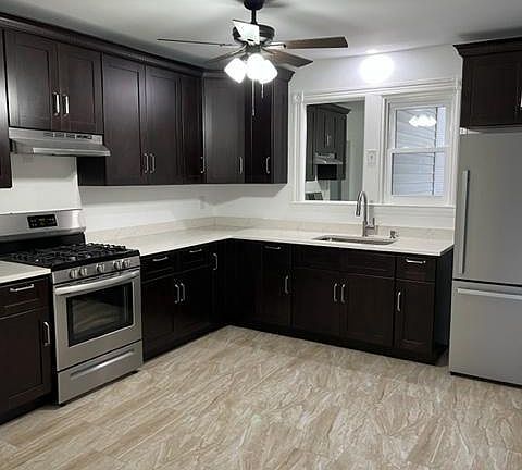Simply stunning rental that offers 3 bedrooms and 2 full baths. This unit has been totallay rehabbed with beautiful hardwood flooring and tiling. All bedrooms have new wall to wall carpeting and both bathrooms are beautifully presented with new tub and shower, tile flooring, upgraded vanities and light fixtures and new commodes. The kitchen will astound you with the new dark cabinetry and marbled white granite tops and tiled flooring. The appliances are upgraded and brand new, including a generous sized refrigerator, gas range and oven and a vent hood. The custom tile flooring continues into the hallway and into the provided laundry area on the main floor. Tenant to supply their own washer and dryer, but the hook ups are there. Windows have all been replaced and are white vinyl for a new, clean look. The entire interior is freshly painted and a deep additional walk in closet can be found off of the primary bedroom. This unit is for the most fussy tenant and will surely please your eyes. Private parking in the rear behind your home allows easy access into you back door while the very large lot can be used for tenant enjoyment. The open front porch with roof overhand will be a real pleaser for you to enjoy. This is a main floor unit and there is an equally beautiful upper unit that will establish new tenant(s) soon. Owner is pet friendly, and will allow pets on a case by case basis. Application to rent is offered through Rentspree so do not delay and miss your opportunity.