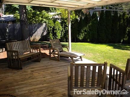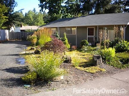 1512 square fee, 1 1/2 car garage, double carport, RV parking with water/electric hook-up, double lot with automatic water sprinklers, covered deck......landscaped with water feature! Mother-in-laws home that we fixed up to accommodate her aging physical needs. 3 nice sized bedrooms, and a full large bath with accessible shower. Family room at other end of the house, or master bedroom with full bath and laundry. New kitchen counters, all new light fixtures, new appliances in 2007, new flooring throughout the house, well insulated, all new bathroom fixtures in both bathrooms, double pane windows with new blinds, plumbing and electrical all updated, new heat pump in 2007 with a special electronic filter for allergies (2008), asphalt roof in 2005, landscaped with water feature in backyard, underground automatic sprinklers, extra storage shed on back of garage, extra parking everywhere, garage insulated, double carport with floor to ceiling storage cabinets, fence replaced in 2008. This is a very nice house, ready for move-in, we spent $65K updating the house after we bought it.....you'll get the benefits! If you are looking for a nice house with a big lot, RV hookup, and lots of extra parking.......and on a quite untraveled street with great neighbors - give me a call. Please note the house is to be sold as is, not because it needs work but because we've done it all - you just need to move in and enjoy the backyard this summer. Close to University and S. Eugene High/Spencer Butte. By appointment only, as I don't want my dog Additional property info: http://www.forsalebyowner.com/listing/EFRX2?provider_id=28079