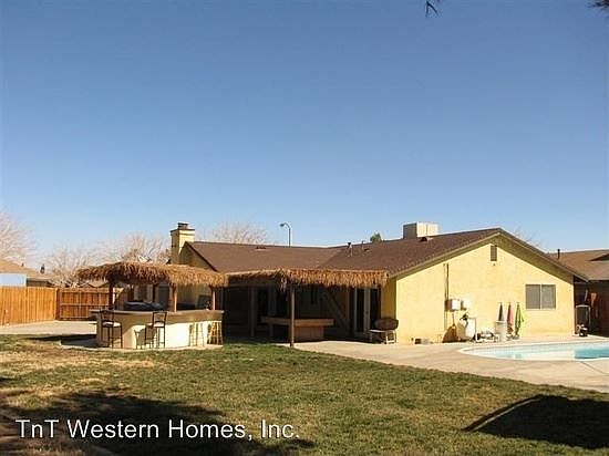 Your own resort!Amazing remodel begins in front w/custom shutters & new landscaping.Living rm is home theater w/120 auto screen & hd video projector.Dupont wood laminate floors in living,dining,family,kitchen,4th bdrm & hallway.New carpet 3 bdrms:all have fans!Guest has new sink & faucets.Master suite features shuttered closet w/organizer;French dr to patio.Unique bath w/lge shower,2 new vanities,pendant lites.textured wallpaper w/chair rail.Tile floor set on diagonal.New kitchen has island w/pendants & recessed lighting:new granite counters & glass tile backsplash,cabinets,ss stove,mw,sink & restaurant style faucet.French drs w/enclosed blinds open to covered patio & unique outdr kitchen w/2 commercial bbqs,2 fridges,speakers,stained concrete counter & thatched roof.No maintenance saltwater fiberglass pool(new pump)surrounded by cool deck.Grassy area has planted border,horseshoe pit,pergola,spring rider & club house for tykes!RV area has hookups.New dual flush toilets;finished ceiling