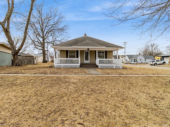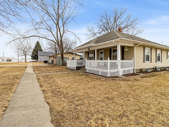 Welcome to this charming craftsman style ranch home w/ the most beautiful covered front porch on a spacious corner lot featuring 3 bedrms, 1 full bath & large 2 car attached garage that offers a perfect blend of modern comforts & conveniences. Located in the peaceful Pleasantville community & school district, this cozy home features spacious living areas with a warm, open feel & fabulous storage space including a fully remodeled bathroom with LVP floors & built in cabinet. The spacious living room flows effortlessly through the arched doorway into the formal dining room w/ additional built ins & into the spacious, eat in kitchen w/ newer kitchen sink/faucet, newer kitchen appliances & loads of cabinet space and another beautiful accent wall w/ beadboard. The original pocket doors from living room to bedroom are in spectacular condition and add to the charm of this well cared for turn of the Century home. The primary bedrm is adorned w/ beautiful wainscote accent walls w/ large walk in closet w/ laundry room off primary bedrm. The large yard is ideal for outdoor gatherings, gardening, or enjoying peaceful moments by the firepit together. This home offers a wonderful opportunity for first-time buyers or those seeking a cozy retreat. Schedule your showing today with your favorite Realtor!