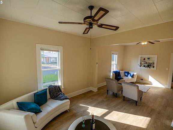 Charming 1908 Bungalow with modern upgrades looking onto WW2 park. This is one of the adorable homes on the very low-traffic Burgen Street looking at the greens of the park. This older home has high ceilings and beautiful large windows. The current owner recently replaced all the flooring with high quality LVP and all the siding on the entire house. New Mitsubishi Mini Split has been installed to keep the house comfortable. Washer and dryer will stay with the home in their large laundry room. Extra drawers and counter space in the laundry could double for a large pantry for the kitchen. Extra living space makes this house an amazing option for anyone. Have two living rooms, one big one, or a formal dining room. In both bedrooms, closets have lights have been installed. In the rear of the home is an oversized car port with a nice concrete pad and space to park 2 cars plus some with a small back door mud room to store coats and shoes. A green lawn and pretty flower beds complete this beautiful and well kept home. Even the cornice brackets recently got a facelift. No hammers needed, move in ready. Call your agent to schedule a tour to see this special house today!