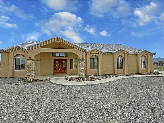 Situated in a calm and serene neighborhood and surrounded by the beauty of the desert with mt. views. You may even see one of the wild horses of the "wild west". Inside, is warm and welcoming with a large "great room" that includes a wood burning fireplace perfect for those cozy, cool winter evenings and great for entertaining. The kitchen offers ample space for more than one chef to create a perfect meal for that special occasion. The primary bedroom is large and comfortable with french doors that lead to a spacious back yard with a covered patio to enjoy an evening barbecue meal in the warmer months and after a long day you can retreat into to large primary bathroom for a soak in the jetted tub or shower in the walk in, glass cubed shower. Room for more than one. Two additional bedrooms perfect for guests and a large den if you need an in home office. Travel down the long hall to a separate laundry area equipped with a washer/dryer. 2 car garage and property is fully fenced.