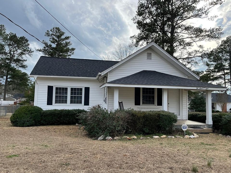 Adorable bungalow with new refrig. and stove. New hot water heater, new tub and shower. Large master bedroom. New carpet in master br. and LVP flooring in remainder of house Sits on a corner lot with fenced backyard and a storage building. Walk to downtown Erwin and grocery store 2 blocks away.