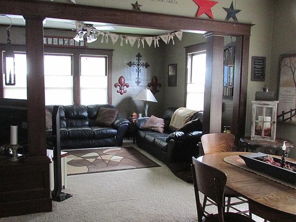 This charming older home has a lot to offer. Outdoor living areas include two large covered porches, great for porch swings. The fenced in yard will keep your pets safe. The exterior is maintenance free allowing you the time to sit and enjoy the outdoors. The huge garage will allow you to tinker with whatever interests you have. Inside you will find 2 bedrooms on the main floor and 1 up. There could be a 4th in the basement. Main floor open area includes front entry, living and dining area. Applianced kitchen with lots of cabinets and large pantry. 2 full baths. Full basement. Optional wood burner or GFA. Updated electrical. Natural woodwork. This home is ready to move right in. Tenant rights, month to month renter.