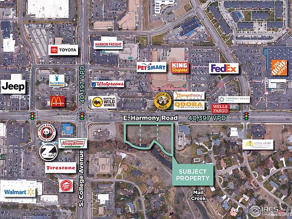 Prime development or build-to-suit opportunity at the highly visible intersection of Harmony & College Avenue. This location offers excellent exposure and is situated directly across from a busy and established retail and commercial area. The property's close proximity to Fort Collins' extensive bike trail system and public transportation ensures easy access for both employees and customers. Develop this site into a retail or office space that meets your specific business needs in a thriving, accessible location.