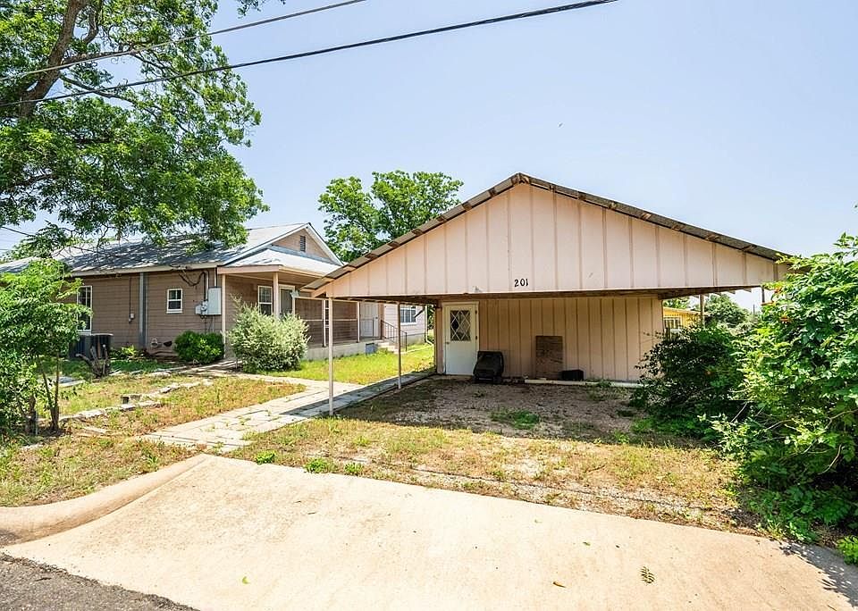 This property, situated on a corner lot spanning 0.80 acres and zoned R-2, offers a unique opportunity. Built circa 1949 according to GCAD records, this 2-bedroom, 2-bathroom home boasts a den that could easily be converted into a spacious third bedroom with its own bathroom. The original part of the house is believed to have wood floors beneath some of the current floor coverings. An addition was made in 1994, as per GCAD documentation. The house is positioned to one side of the lot and features city water and sewer connections, as well as a water well. Additionally, amenities include a carport, workshop, and a covered flagstone patio. Conveniently located between Highways 16 South and 87 South, this property is in close proximity to essential amenities such as a grocery store, hospital, wellness center, primary school, and high school.