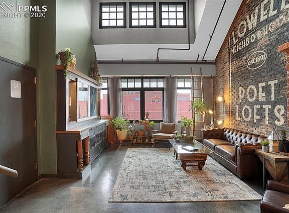 Downtown industrial loft living at its finest! This Poet Lofts condo boasts the finest details throughout.Soaring ceilings and artistic brick work greets you as you enter this rare find. Fully remodeled throughout, Samsung suite of stainless smart appliances, granite kitchen countertops, custom 4 1/2 foot double faucet kitchen sink workstation for entertaining. Custom - concrete sinks in bathrooms, stair railing and doors throughout. Large walk in glass and tile shower in upstairs master bath. 2 of 3 bedrooms have walk-in closets, stained concrete floors. One of a kind built in entertainment center w/a hidden television enclosure. Custom bar in the loft w/3 door glass front refrigerator, luxury Italian windows throughout. 2 oversized parking spaces w/2 storage units in underground secure heated parking garage, for tenants only. Large storage area off master upstairs closet. Walking distance to many bars and restaurants. 3 minute drive to shopping and grocery stores. Rental bikes right out front of the secure building. 5 minutes from the new United States Olympic & Paralympic Museum and New Switchbacks stadium.Too many features to list a must see!
