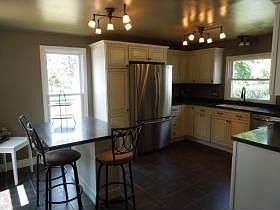 Spacious 4 bedroom home located at the edge of town on a large corner lot. Featuring a newly remodeled kitchen with breakfast island, dishwasher, microwave & stove that all stay. 1st floor: bedroom, laundry & bathroom, large living room & dining room have beautiful wood floors, some new replacement windows, new deck w/screened-in canopy, exterior painted in 2010 plus a detached 2 car garage w/opener. Rubber roofs are 1-2 yrs old. Washer & dryer stay plus refrigerator is negotiable.