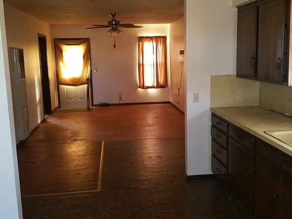 AFFORDABLE HOUSE ready for new owners to transform into an adorable home!! This home sits on a corner lot with a chain link fence surrounding the front yard. The back yard is partially fenced with a 6 foot chain link fence complete with a storage building and 2 car carport. The interior features a living and dining room combination and kitchen with gas stove and washer/dryer hookups. The bath is conveniently located between the 2 bedrooms and has a walk-in shower.