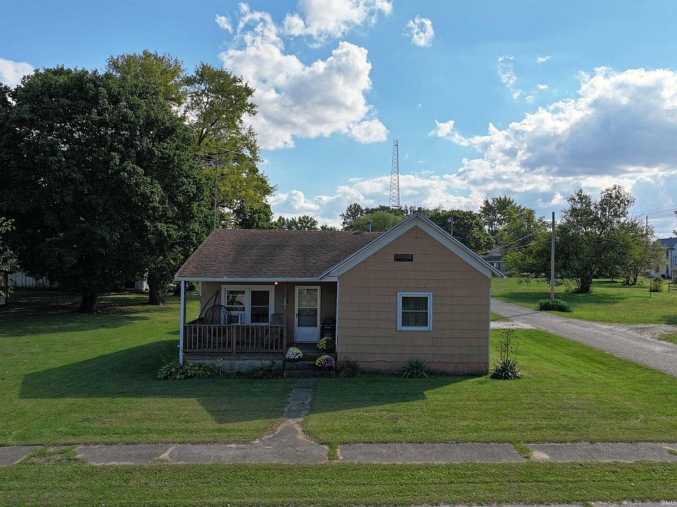 Welcome to this charming and inviting home that boasts two cozy bedrooms and a bathroom. Nestled on a spacious half-acre double lot, the property offers ample outdoor space for a variety of activities. The detached one-car garage provides convenient parking, while the impressive 24 x 40 pole barn, complete with a concrete floor and electricity, offers endless possibilities for storage, a workshop, or a hobby space. The expansive yard is ideal for adding a fence for pets, setting up a playset or pool, or cultivating a beautiful garden. Whether you're seeking an affordable starter home or looking to embrace a simpler, more manageable living space, this delightful property is sure to meet your needs and inspire your creativity!