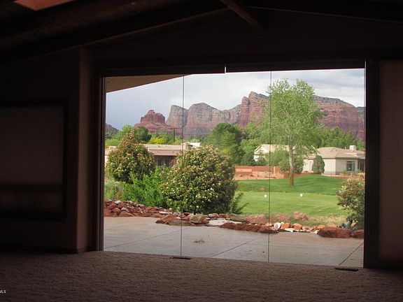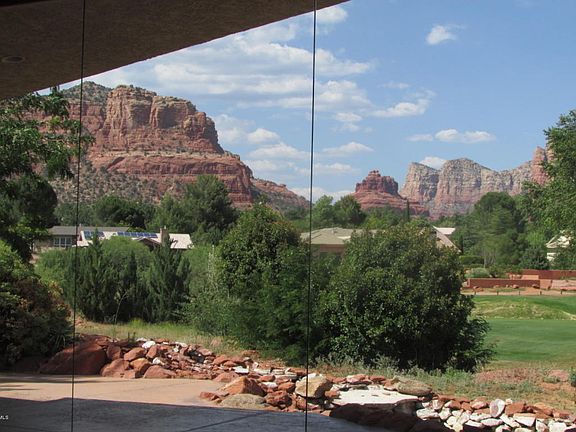 Red Rock views located on the 4th tee of the Sedona Golf Course! Spacious and gracious, this custom 3 bd 3 ba home with floor to ceiling windows and a fireplace in the great room, comes with a kitchen made for entertaining with Knotty Alder custom cabinetry, matching dishwasher, an island and two sinks. A 2nd fireplace in guest room or office. Master has two spacious walk in closets, a jacuzzi tub, views and a slider to side patio. Covered back patio with fire pit, built in cabinets in the garage, central vacuum system, and more.....quality never goes out of style, must see to appreciate.
