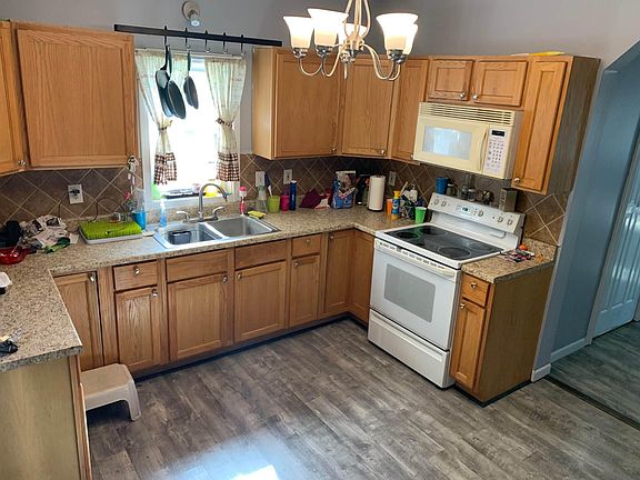 This bright and cheery house on a double corner lot boasts a backyard oasis to make you the envy of all your friends! With a 21' above-ground pool, a covered deck, full wood privacy fence, room for a garden, and lots of new landscaping, you will be enjoying your large yard for years to come! Inside the home is a spacious kitchen with tile backsplash, tons of cabinet space, updated countertops, and laminate floors. Large family room is filled with natural light thanks to the French doors that open onto the deck. Main level is completed by the laundry room inside a half bath, one bedroom, as well as a dining area. Upstairs is a lofted area that could be an office, kids play area, craft room, exercise space-- anything you can think of! Master bedroom and full bath round out the upper level. You have to check out the amazing detached 2-car garage with built-in cabinets and epoxy-coated floor- it could be the perfect man cave or workshop if desired! This property offers tons of amenities at a price much cheaper than rent!