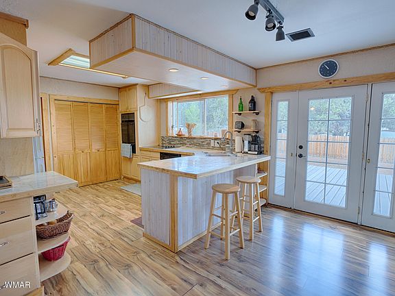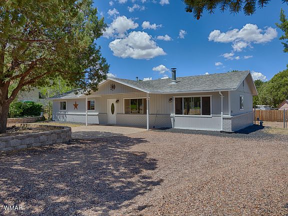 Remarkable home in the heart of Show Low, close to everything, including the schools. Just painted exterior and lovely open floor plan with a beautiful great room with a efficient wood burning wood stove. Large kitchen with a fabulous pantry. Huge dining area. Lovely sitting area or could be an office area. Large laundry as well. Natural Gas for low cost heating as well. Newer huge back deck plus a fully fenced in back yard. Lots of parking with 2 RV parking as well, with one RV hook up. 3 beds with 2 baths. Wood laminate throughout except for stone flooring in the baths. Great neighborhood with paved streets. Don't miss this one!