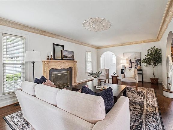 Coming soon in coveted Armour Hills! This charming Tudor stands out with a layout that’s anything but typical for Brookside. The main level is full of character, with detailed crown molding, ceiling accents, and a beautiful fireplace anchoring the living room, which spans the full width of the home. Just off the main living area, the former screened-in porch has been enclosed to create a vaulted second living space—perfect for a TV room, playroom, or home office. The formal dining room is generously sized and opens through French doors to a pergola-covered patio. The kitchen is spacious for the area, with room for in-kitchen dining (table or banquette), ample cabinet storage, granite countertops, stainless appliances, a large pantry, and a main-level half bath.