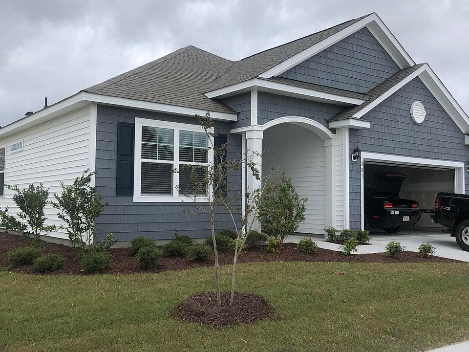 Surf City's newest community, Waterside, is now Selling!!! Within walking distance to local eateries shopping and the island The Eaton plan is a perfect home for relaxation and entertaining with a very open floor plan, 10-foot high ceiling, and a large gourmet kitchen with 36'' staggered cabinets with crown molding, granite, tile backsplash, walk-in pantry, and stainless-steel appliances in kitchen. Luxury Vinyl Plank flooring is included in the main living area, giving you a wood-like look with the durability to handle all your beach days and the Coastal trim package will remind you that you're just minutes from the island. The owner's suite features a step-in 5-foot shower and dual vanity. Spend the end of your days on the oversized covered porch that has plenty of room for relaxing!