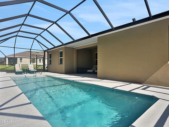 Newly constructed pool home located in the desirable VICTORIA OAKS community! This charming 4 bedrooms 3 full bath 3 car garage DESTIN floor plan is designed with a massive open concept Family/Kitchen/Dining area with plank tile throughout. The owner's suite encompasses GRANITE countertops for the double vanity, WALK-IN shower & closet, and a large soaker tub. The cheif's kitchen is equipped with 36'' white shaker cabinets, stainless steel appliances, massive island, granite countertops and elegant backsplash. The backyard oasis has a solar heated pool, lounge area and covered lanai. This home site is unique in that it has no rear neighbors and is on a corner lot! Owners spared no expense adding whole house solar and installing a water softener system!