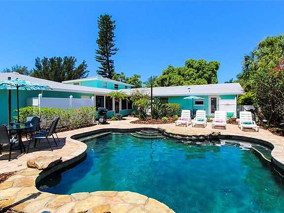 Welcome to your Anna Maria Island Retreat! This two-sided property has amazing island charm with the privacy of 2 separate places all in one home! This large property sits on two buildable lots and is the perfect investment if desired. You could build 2 houses here or 1 very large home. There are completed plans for both options. Or just keep as a vacation or permanent home for large families and friends. You'll enjoy all the space with some added privacy because of the two living areas. Relax and entertain in the resort style backyard with beautiful sparkling pool! All together this home offers 6 bedrooms and 4 bathrooms. The main side features 4 bedrooms and 3 bathrooms with a full kitchen, a spacious living room with plenty of seating for all, along with a separate dining room It has 2 bedrooms off the main living space with a shared bathroom. There are 2 bedrooms upstairs, one king ensuite adjacent to a room with 2 sets of bunk beds. The cottage side features 2 bedrooms with a shared bathroom, kitchen, and open living space. There is a full size 2 car garage for your vehicles, golf carts and beach toys. This is an excellent location on AMI! It is just 3 houses away from the pristine Gulf of Mexico Beaches! You are there in a minute to relax and enjoy! This home is situated in a quiet and beautiful area on the north end of Anna Maria Island. You are also a minute stroll to Pine Avenue where you have access to numerous shops, boutiques, dining and restaurants, bars and entertainment. This property in paradise is ready and waiting for you.. Call today!