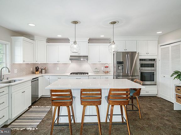 Beautiful brick home in the desirable Elizabeth Haddon section of Haddonfield! Enjoy the neutral colors and original woodwork throughout while having the comfort of all new systems, bathrooms and kitchen. Can be 4 bedrooms with a finished attic, two huge closets, recessed lighting, and separate heat and air unit. (just create a hallway next to the primary bedroom) This home has been completely renovated and updated! Newly renovated kitchen boasts light gray herringbone backsplash tile, quartz counter tops, white cabinets, island seating, pendant lighting and stainless appliances. Kitchen and family room are one huge space to give that great open feel. Vaulted ceiling, new hardwood floors in family room, built-in bookcases and entertainment center too! A wall of windows in the family room gives you great views of the fenced backyard and large deck. Replacement windows throughout except two decorative windows by the beautiful fireplace. Spacious bedrooms and large full bath with double sinks, and beautiful shower and tub with white tile surround. Third floor office or exercise room could also be a 4th bedroom. First floor laundry and utility sink, and finished basement with wood floors. A murphy bed was just installed for sleepover parties! Close proximity to downtown, the Patco train and schools- right in the heart of the town. Great opportunity in Haddonfield with all the upgrades, the size and location for this price! Blue Ribbon Excellence Award for Lizzy Haddon elementary school too!